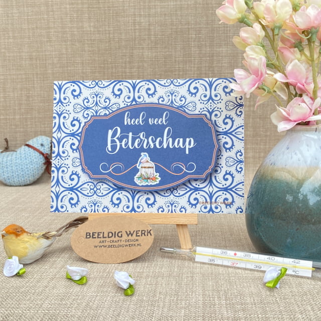Ziek zijn is niet leuk, maar een kaartje helpt! Maak iemand blij met deze vintage beterschapskaart van Beeldig Werk met een lief vogeltje. Een hartverwarmende groet. Bestel ‘m nu!