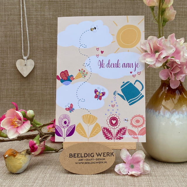 Zeg “Ik denk aan je” met deze troostvolle sterktekaart van Beeldig Werk. Een liefdevol gebaar in moeilijke tijden vol warme illustraties van dieren en bloemen. Bestel ‘m hier direct online!