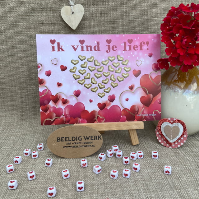 Ik vind je lief! Verras een speciaal iemand met deze prachtige kaart van Beeldig Werk vol gouden hartjes. Een schitterend en warm gebaar voor een echte lieverd. Bestel deze unieke kaart nu direct online!