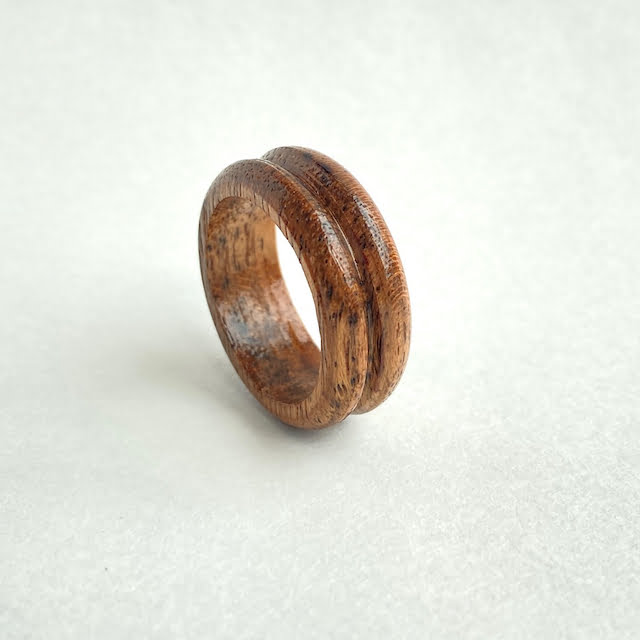 De ring is afgewerkt met meerdere lagen lak, waardoor de ring best tegen een beetje water kan. Desondanks is het niet handig om ermee onder de douche te gaan, hout houdt nu eenmaal niet van water. Pas ook op met schoonmaakmiddelen.